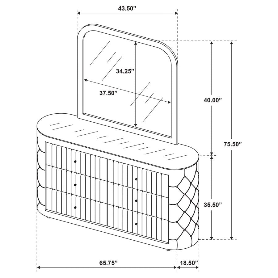 Sonya 6-drawer Upholstered Bedroom Dresser with Mirror Ivory - 360113M is backordered and will ship as soon as it is back in stock.