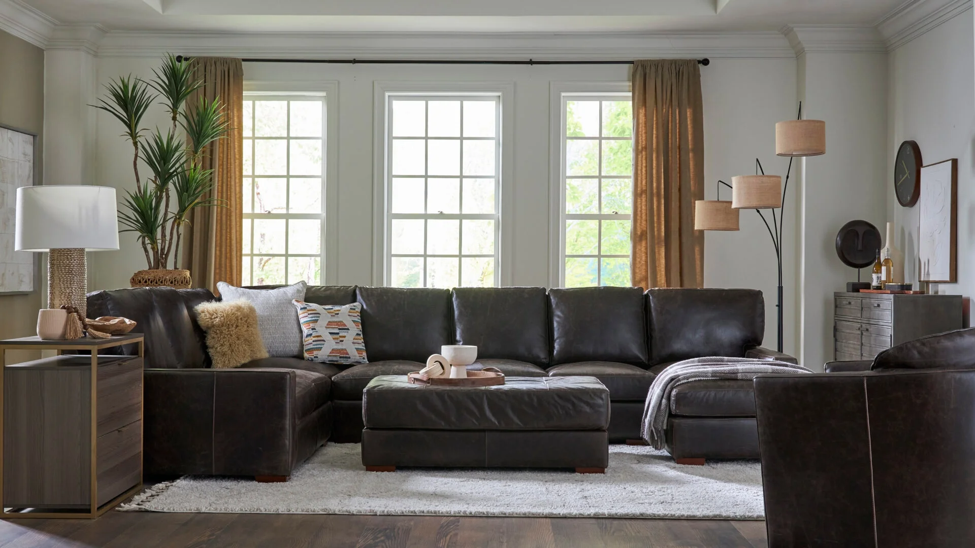 The leather upholstery is not only stylish, but also durable and easy to maintain, making it a practical choice for busy households. The traditional and industrial design elements work together to create a timeless look that will never go out of style. Bring warmth, comfort, and sophistication to your living room with this beautiful sectional sofa.