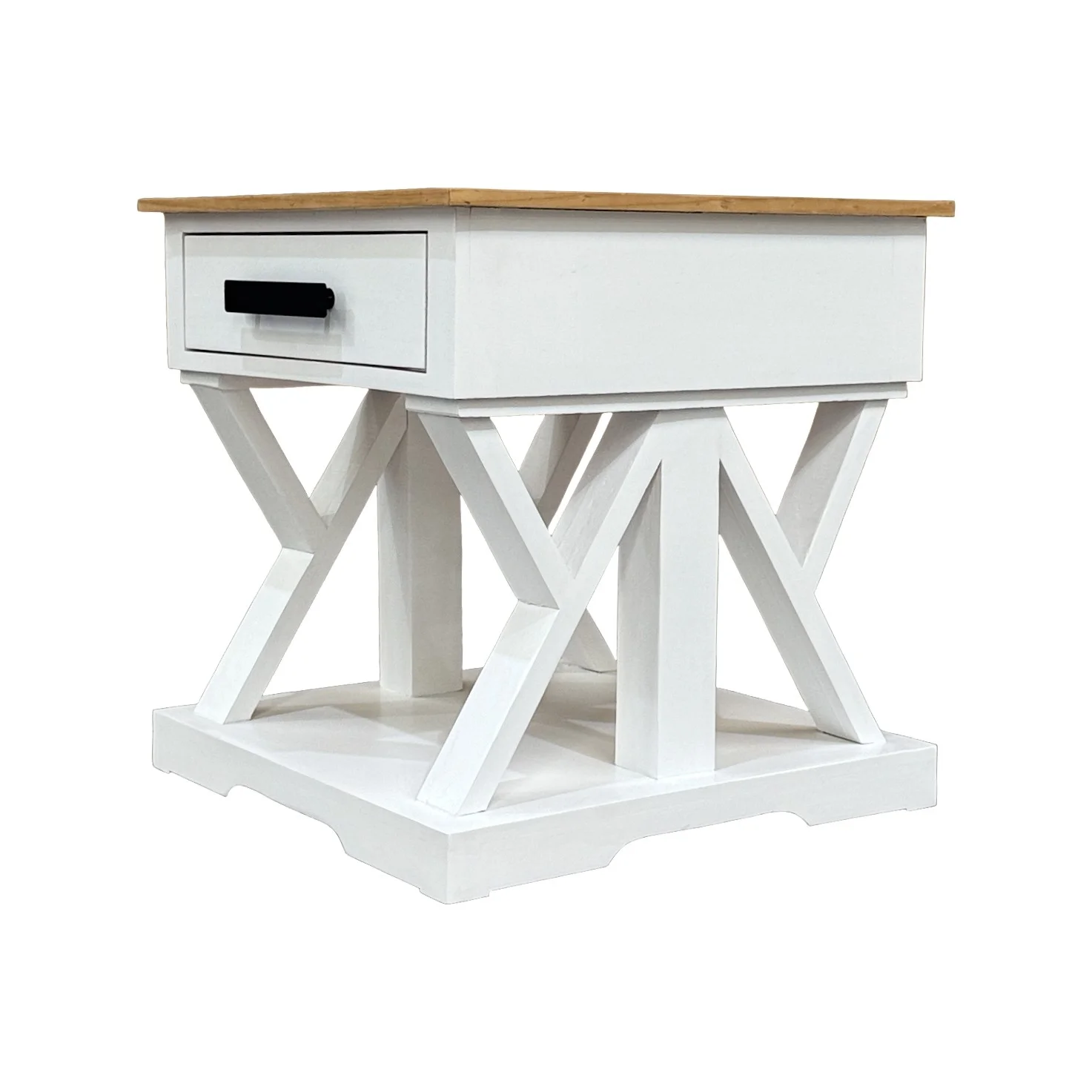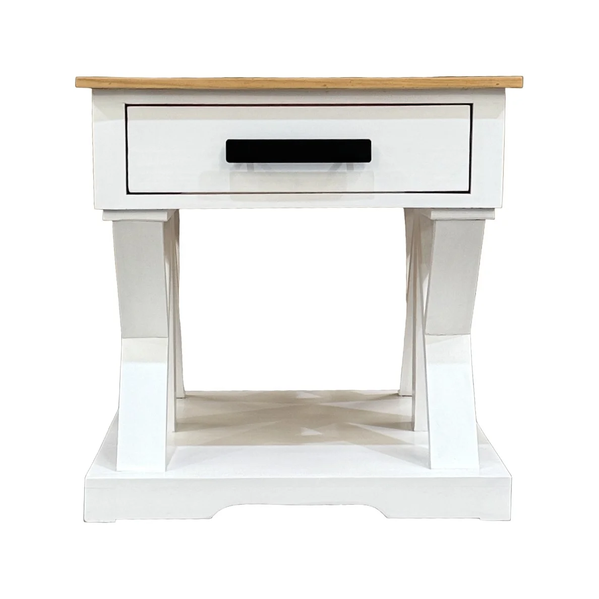 This charming end table is a perfect addition to any cozy living space, blending effortlessly with cottage, farmhouse, and casual decor styles. Crafted from solid wood in a beautiful pure white finish, it brings a sense of warmth and inviting charm to your home.