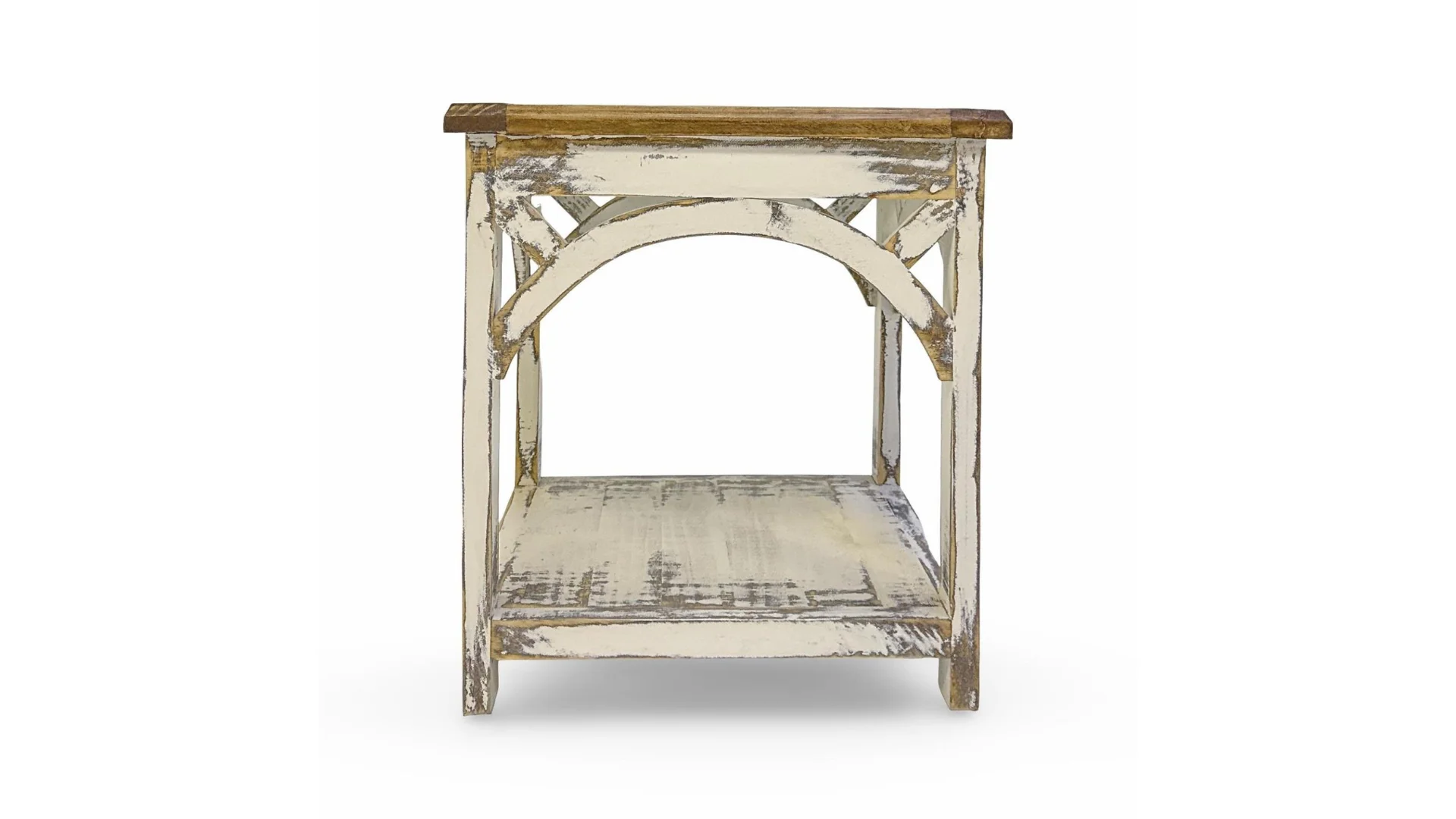 This charming end table is the perfect addition to any room, offering a rustic and casual touch to your decor. Made from high-quality solid wood, it features a beautiful white finish that adds a warm and inviting ambiance to your space.