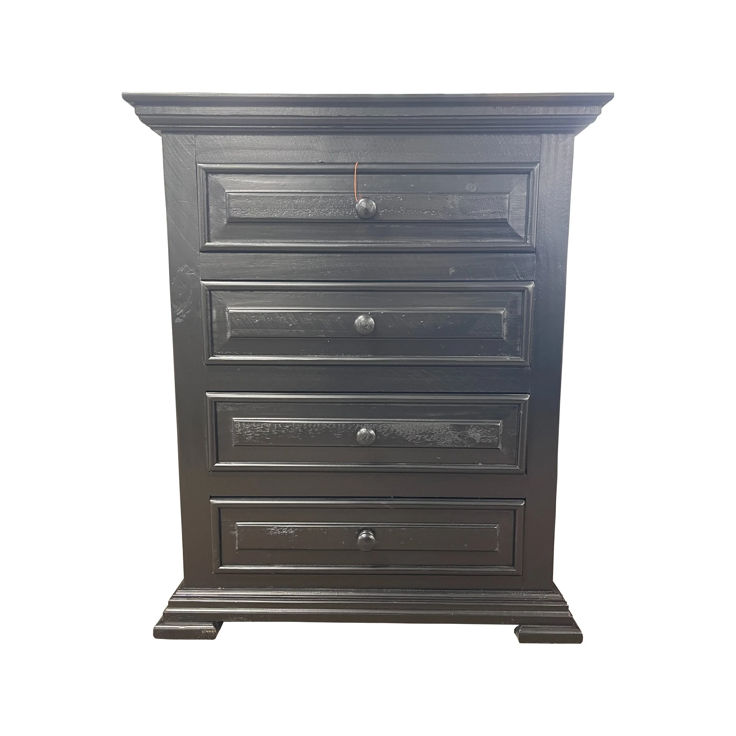 This nightstand is a perfect blend of casual and traditional styles, making it a great addition to any bedroom. With its dark wood tone, it adds a sense of warmth and coziness to the room. The four drawers provide ample storage space for your bedtime essentials, keeping them within easy reach.