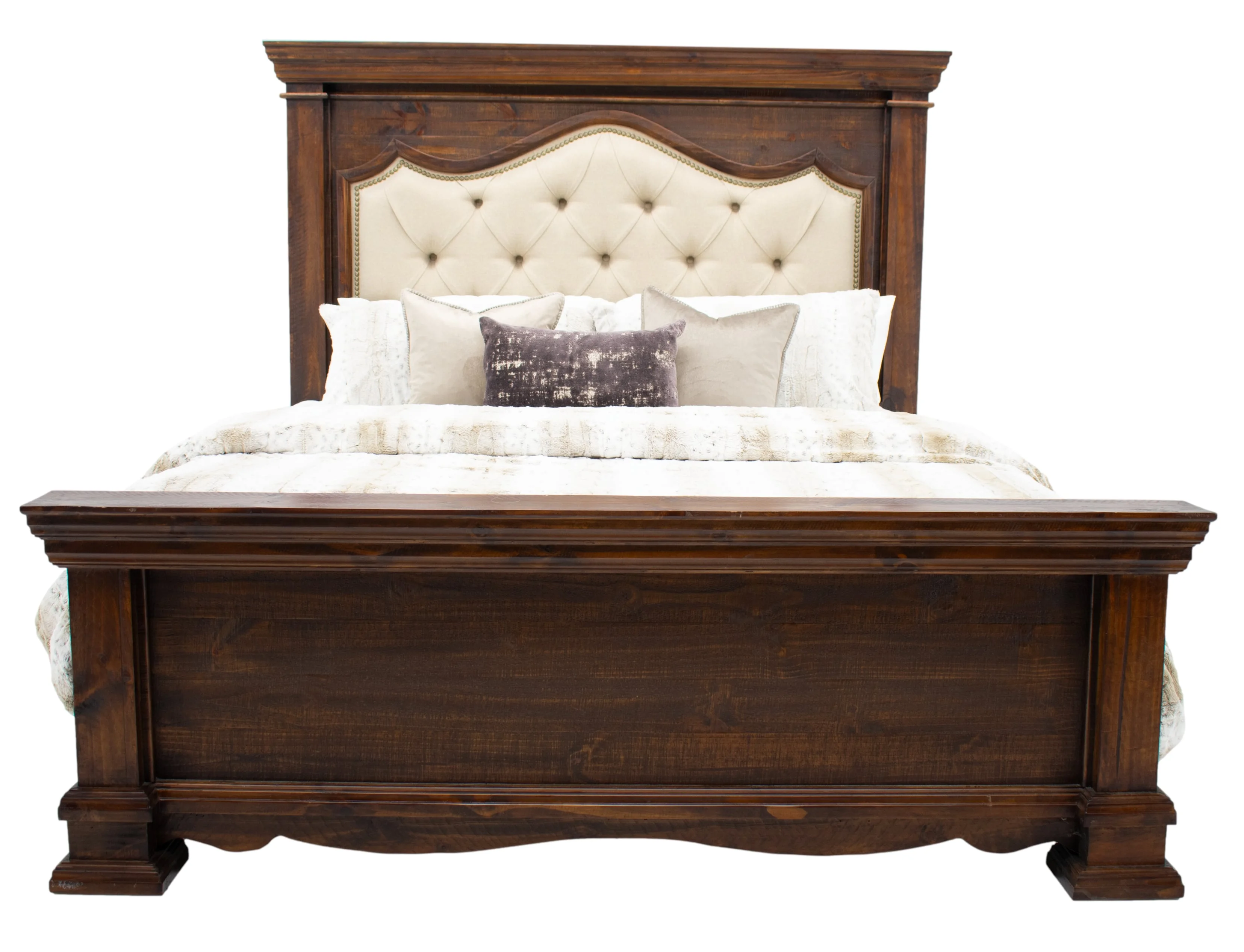 The Chalet Chalet Walnut Padded Queen Bed, made by Vintage,