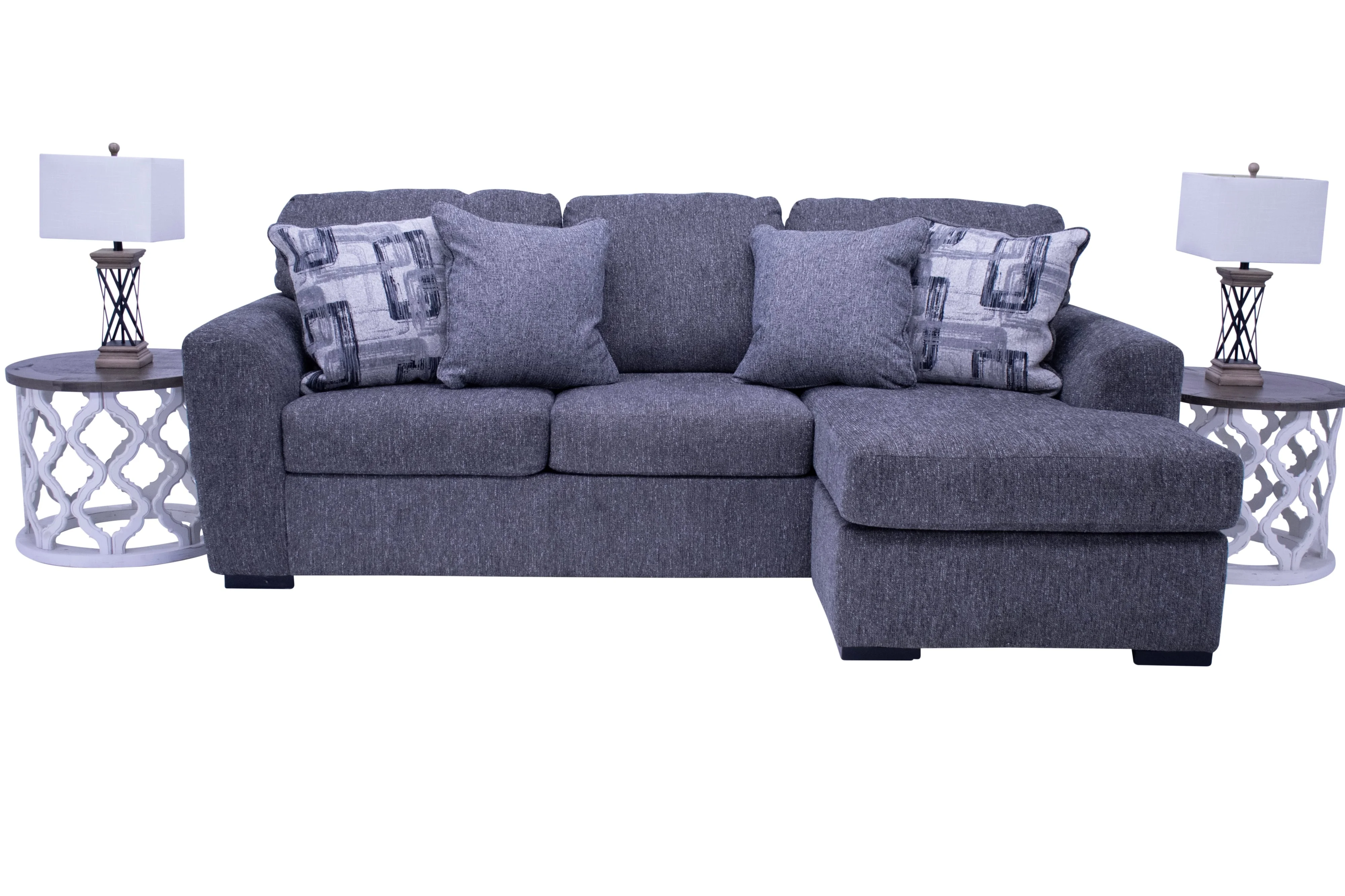 High-quality foam cushions wrapped in poly fiber, Exposed feet with faux wood finish, Attached back and reversible seat cushions, Platform foundation system resists sagging 3x better than spring system after 20,000 testing cycles by providing more even support, Smooth platform foundation maintains tight, wrinkle-free look without dips or sags that can occur over time with sinuous spring foundations, Chaise can be positioned on either side (thanks to reversible seat cushion and movable ottoman), Accent pillows included, Corner-blocked frame, Pillows with soft polyfill, Polyester upholstery
