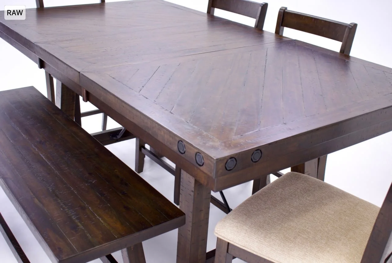Old world beauty meets new world charm in my timeless Darcy collection. Made from 6mm solid Acacia laid over a substructure with Rubberwood accents and other Acacia solids. Repurposed into beautiful furniture, each piece is unique to itself. Built for the most discerning consumer this counter height table features a built in leaf. The length can be adjusted from 78'' to 60'' with the leaf removed. The table is also cable gear driven for ease of operation. The chairs are solid Rubberwood, and underneath the table, the look is completed with Iron a stretcher. The Parsons chairs are upholstered in a beautiful chenille fabric, but don't worry, its 100% polyester so they are very family friendly.