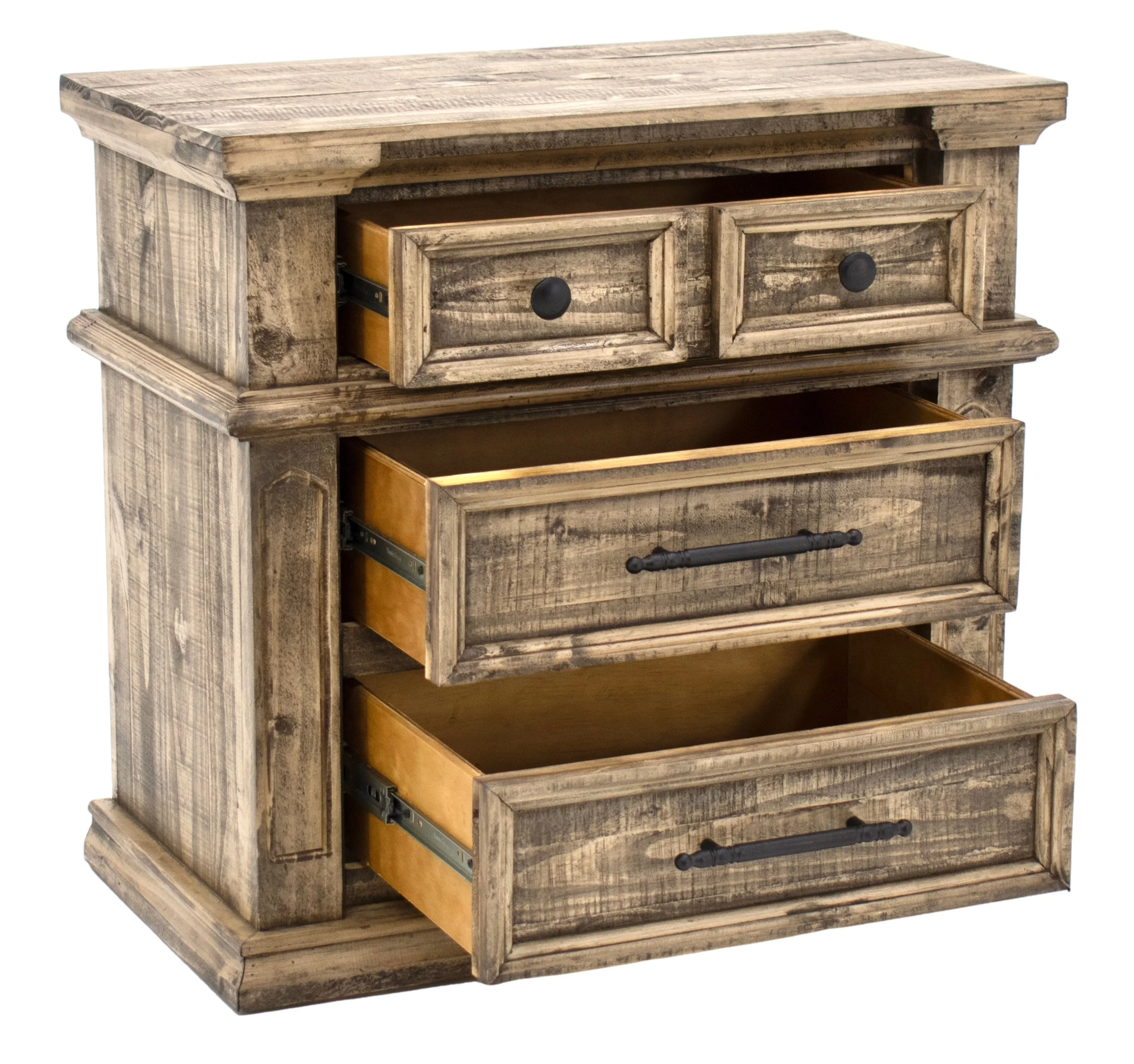 Inspired by traditional designs, the Gabriella collection is ready to bring a fresh new vibe to your home. These handsome pieces feature elaborately carved accents and turned legs and feet, grounded by simple antiqued hardware. Finished in a cool Sand Stone stain, they easily elevate any space.