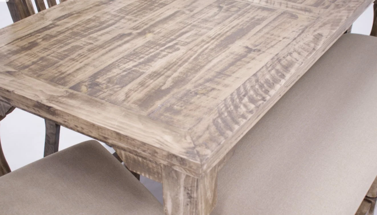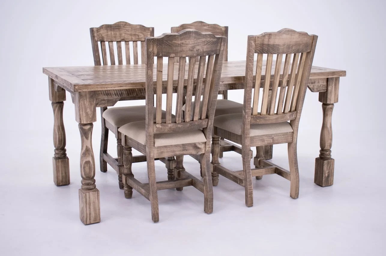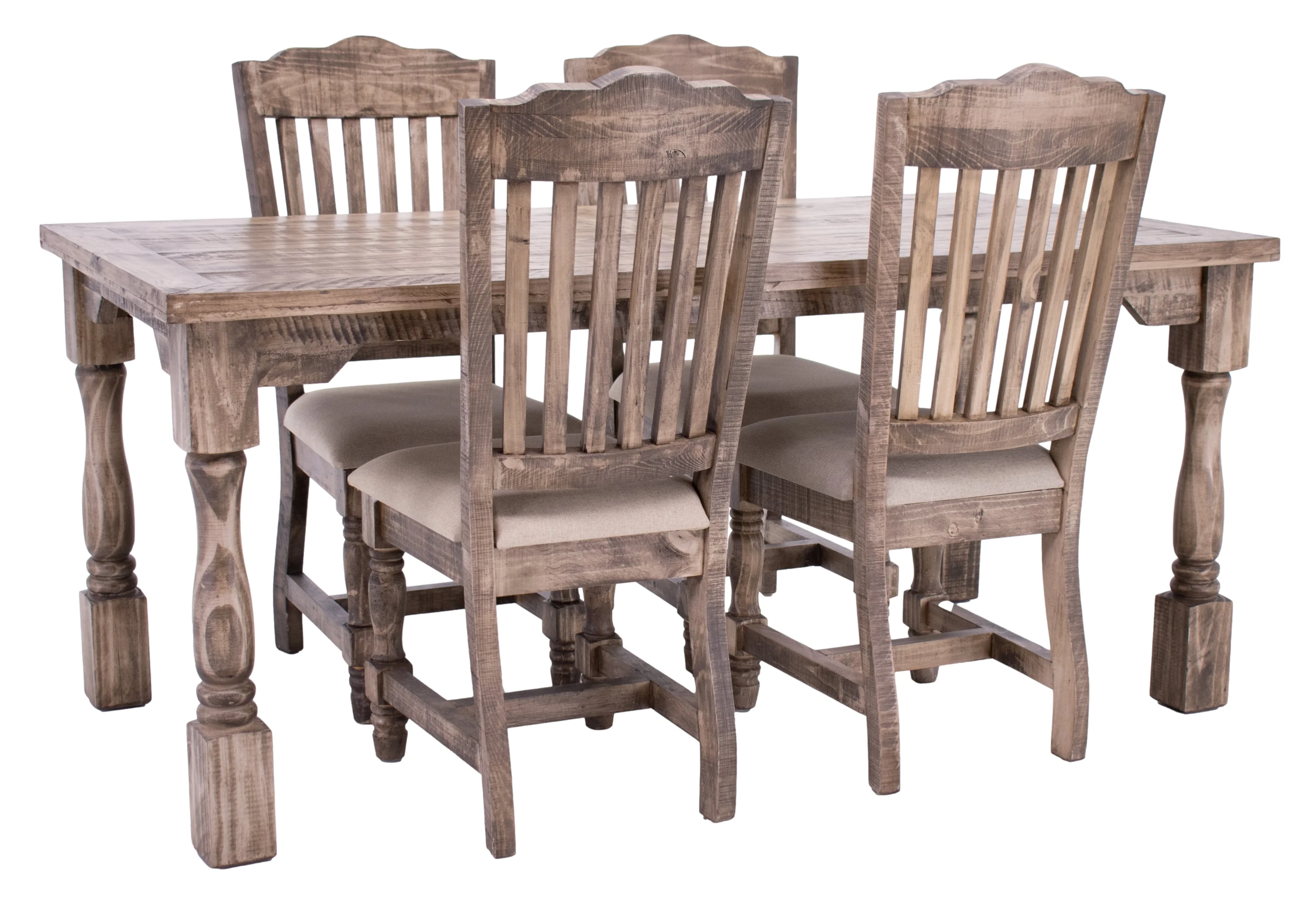 This dining set contains the Martha Sandstone table and 4 chairs.