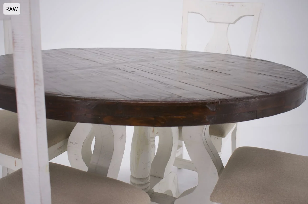 Body - The finish on this product is 100% unique and applied by hand. It is a water based stain that we will need call “New White” and it's off white in color!