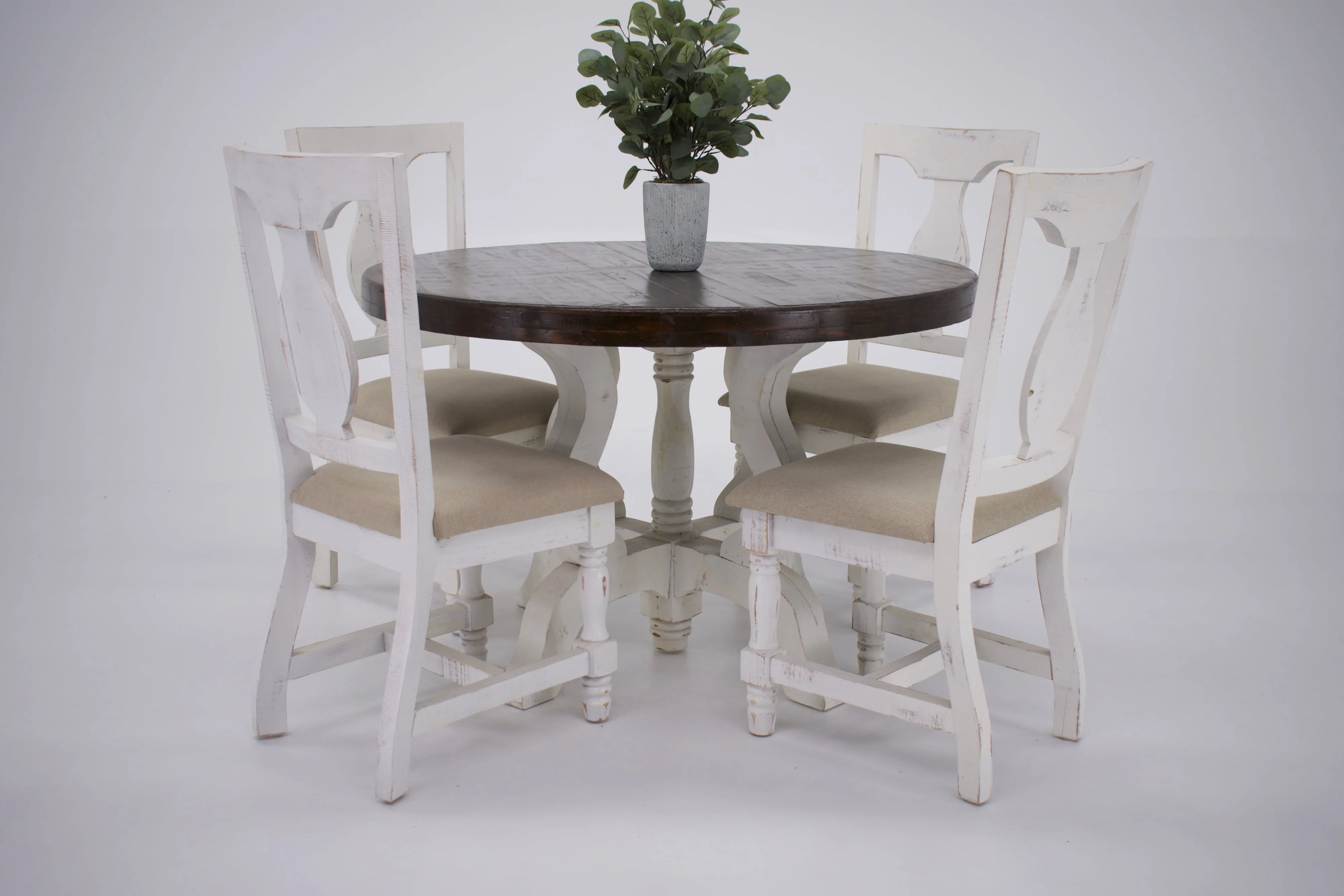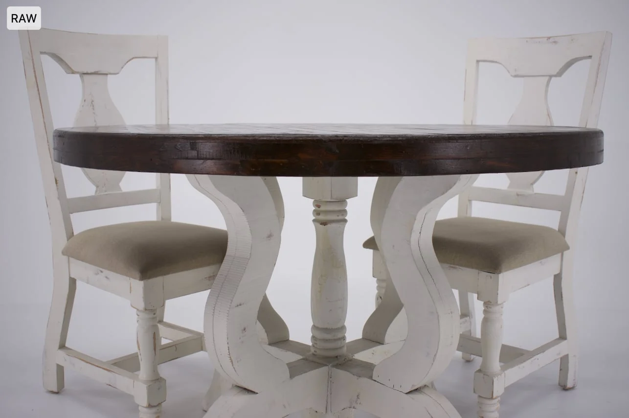 - Body - The finish on this product is 100% unique and applied by hand. It is a water based stain that we will need call “New White” and it's off white in color! Accent - The finish on this product is 100% unique and applied by hand. It is a water based stain that we call “Rodeo” and it's brown in color!